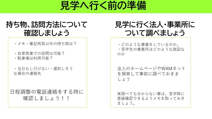 「見学に行く前の準備とは」