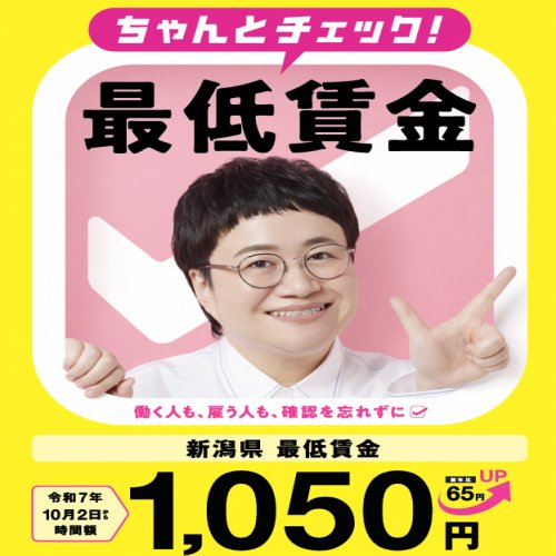 令和7年10月2日から新潟県の最低賃金は1,050円になりました。