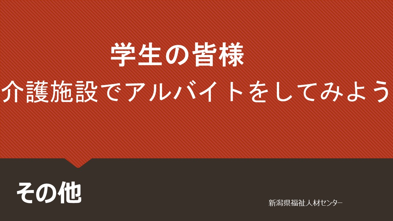2025.12.18 学生の皆様!介護施設でアルバイトをしてみませんか? 2025.11.20 【よくある質問】福祉の職場では、どんな職種や資格を持った人が働いている? 2025.10.16 【よくある質問】確認しましたか?最低賃金、改正しました! 2025.10.1 《フェア開催報告》9月27日(土) 福祉のしごと就職フェアin新潟 2025.09.18 【よくある質問】見学って行った方が良いの? 2025.08.26 新潟市内の事業所限定☆福祉のしごと就職フェアin新潟 2025.08.21 【よくある質問】求人票の見方 2025.07.17 親子で介護体験☆夏休みに介護を知ろう!学ぼう!体験しよう! 2025.06.24 《福祉のしごと就職フェア開催報告》6月8日(日)長岡 6月21日(土)上越 2025.06.19 【よくある質問】 福祉人材センターってなに? 2025.05.22 就職フェアがあなたの地元で!長岡・上越で開催します! 2025.05.21 《フェア開催報告》令和7年5月18日(日) 福祉のしごと就職フェアin新潟 2025.04.24 5/18(日)福祉のおしごと限定!県内最大級!就職フェアへ行こう!!! 2025.02.20 「福祉・介護の魅力を伝えるセミナー~“ふくし”業界のおもしろさ~」を開催します! 2024.07.18 夏休み介護体験ツアーを開催します! ~親子で介護にふれてみよう~