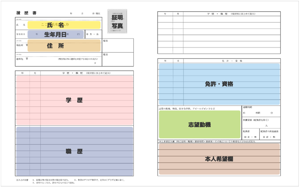 氏名・住所、これまでの経歴など基本情報を記載したものです。社会人としてのマナーが問われます。